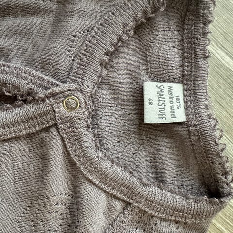 Heldress i 100% merinoull. Størrelse 68/74. Passer til gutt og jente. Fra røykfri og dyrefritthjem.