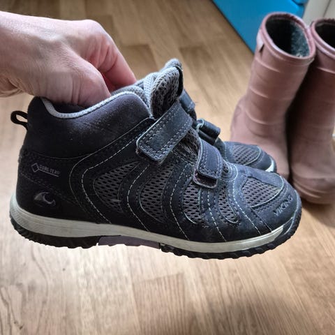 Viking unisex overgangssko i størrelse 28. Skoene er svarte med borrelås for enkel justering og har en slitesterk såle med godt grep. Egnet for barn og designet for komfort og funksjonalitet.