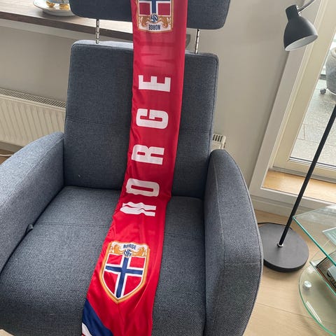 Eldre landslagsvimpel, i pen stand. Perfekt liten julegave til noen som gleder seg til VM?