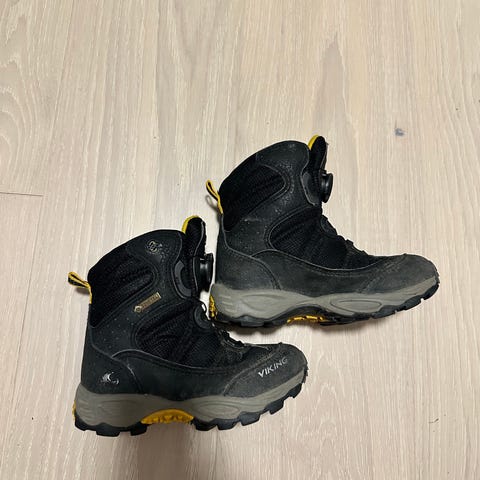 Viking barnestøvler for gutt i størrelse 28. Støvlene er blå og designet for barn. Egnet for utendørs bruk med solid såle og borrelåsfester for enkel påkledning.