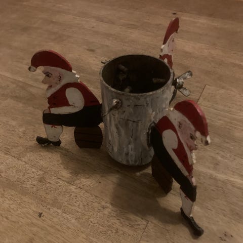 Juletrefot med tre nisser I smijern 19cm høy og 7cm I diameter I åpningen. Sender med postnord kr 69