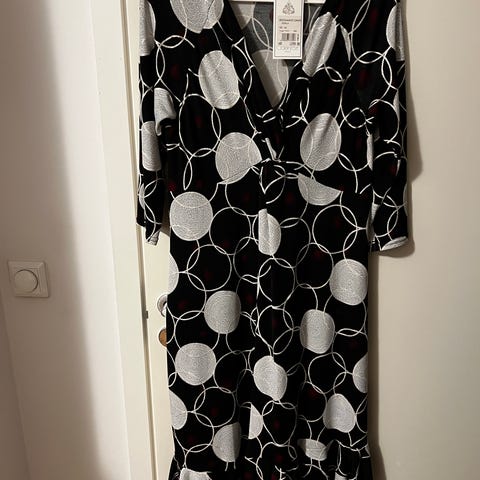 Elegant kjole fra Tara-kolleksjonen, marineblå, størrelse 44. Kjolen kan brukes til fester og spesielle anledninger.