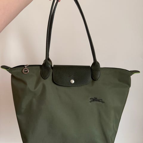 Selger en pent brukt Longchamp Le Pliage Top Handle Small i fargen «Desert», som det ikke er mulig å få tak i lenger.