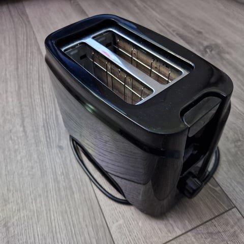 Tristar Brødrister med to spor for brødskiver. Utført i rustfritt stål og plast. Passer til vanlig bruk i kjøkken for å riste brød.