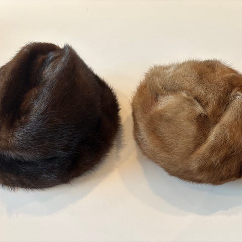 Forskjellige gamle pelshatter i liten størrelse selges.