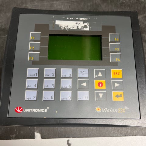 Unitronics PL HMI med berøringsskjerm og flere tilkoblingsporter for digital og analog input/output. Enheten har et kompakt design med integrerte terminaler for tilkobling av eksterne enheter.
