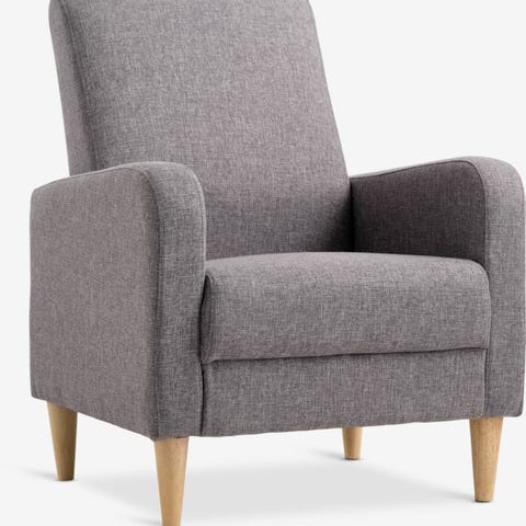 Meget pent, lite brukt og komfortabel lenestol i grå tekstil, perfekt for avslapning i stuen eller lesekroken. De solide eikebena gir både stabilitet og stil, og den grå fargen tilpasser seg lett til ulike interiørstiler.
