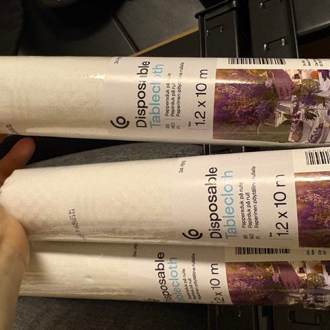 Jeg har flere runde duk som sitter igjen siden vi kjøpte nytt bord. Flere mål. Ganske god standard. 100 nok hver, så diskuterer vi prisen hvis du kjøper flere.