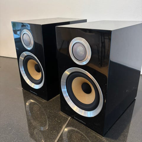2 Bowers & Wilkins Nautilus SCM1 høyttalere selges med veggfeste.
