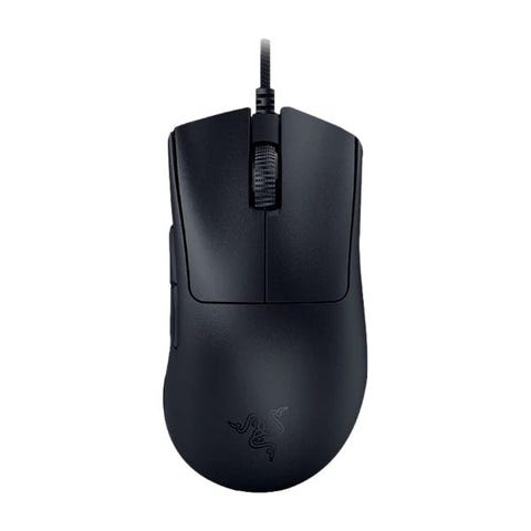 Razer Deathadder med svart farge og kompakt størrelse. Designet for presisjonskontroll og rask bevegelse, egnet for gaming og generell databruk.
