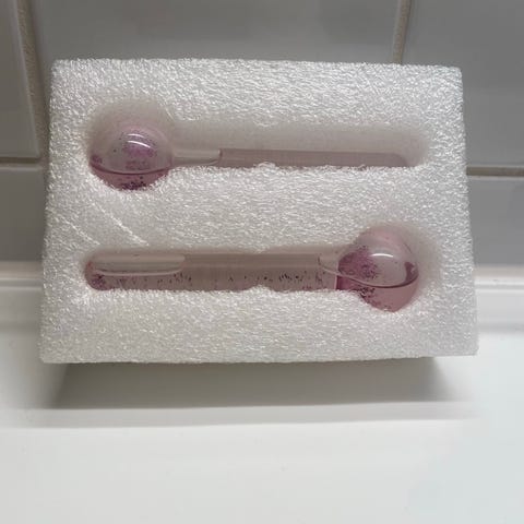 Selger et sett Rosenkvarts Facial Ice Globes – helt nye og ubrukte, fortsatt i original eske.