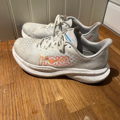 Hoka Clifton 9 løpesko i størrelse 37 1/3 fargene svart og rosa. Skoene er designet for løping og har en komfortabel passform med demping som egner seg for løpere.
