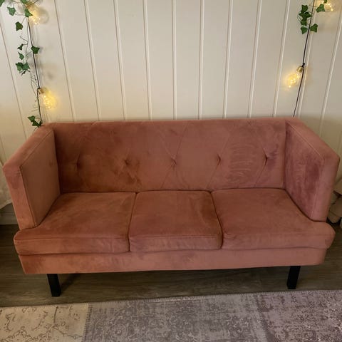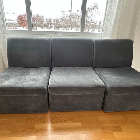 Nydelig barnesofa fra Jotex i mørk blå velur.