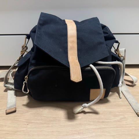 En praktisk og fin stellesekk fra KAOS. Stellematte foran, flere lommer og rom utenpå og inni sekken. Sekken er godt brukt med enkelte flekker jeg ikke får bort og litt slitt.