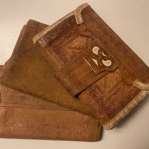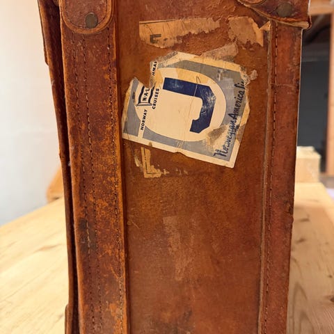Ut fra alder er denne i meget pen stand - med små bruksspor. Har reist med Den Norske Amerikalinje!