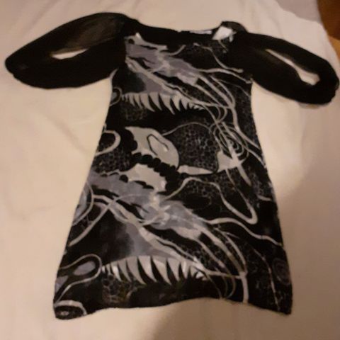 `Den lille sorte` til jul eller nyttårs feiring, størrelse L for kvinner. Kjolen har dekorative detaljer rundt halsen og er laget med et lag av blonder som gir et meget elegant uttrykk. Kjolen er kun brukt en gang. Passer like godt til en M størrelse! Er du intr, så trykk på profilen min og se mine andre annonser.