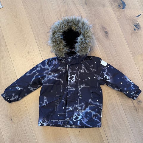 Stor i størrelsen, so har brukt den frå 2-4 år. Mykje refleks på jakka (sjå bileta).