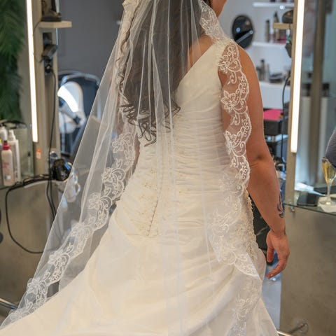 Beige farget 2delt brudekjole.