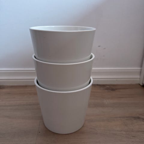 Selger en hvit stor blomsterpotte fra Mestergrønn