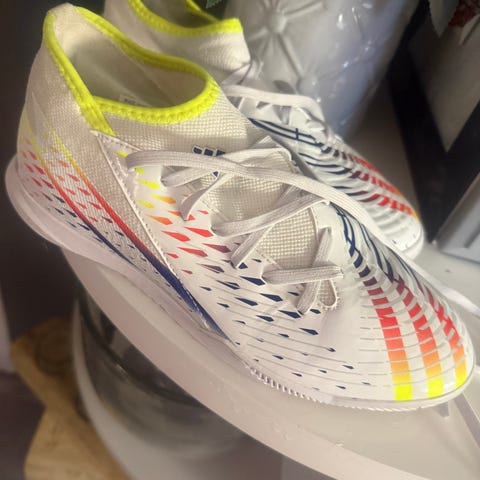 Fotballsko (str uk 9/us 9.5) Adidas predator, keeperhansker (str 8) og leggbeskyttere, selges samlet for 500.-