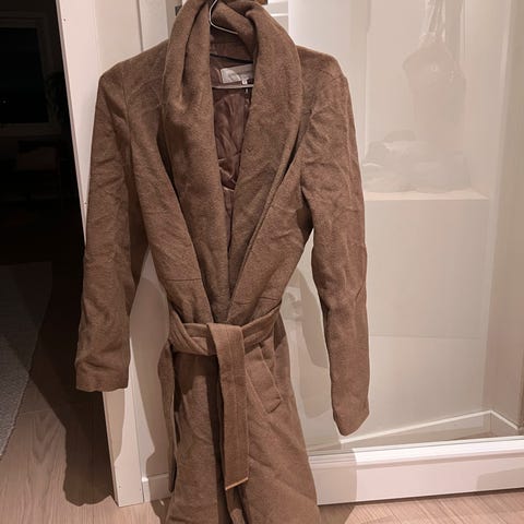 Stilren, nesten ubrukt kåpe i ull og angora, sort. Varm og perfekt for vinterværet. Selges da den ikke er brukt.