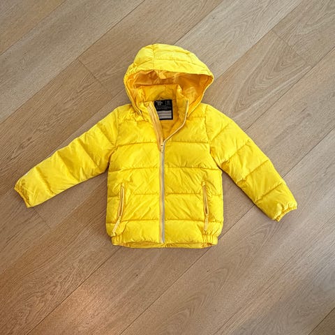 Water-repellent puffer jacket with a hood, zip front and on pockets.