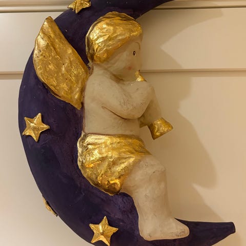 Ca 14 cm høy. Små bruksspor forekommer. Muligens den har holdt noe i hendene en gang. Kan med fordel pusses.