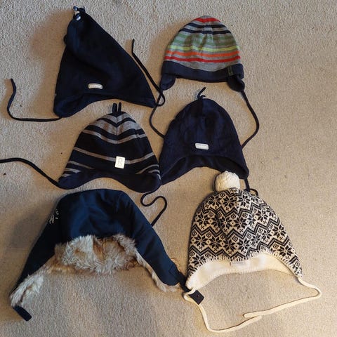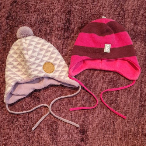 - Rød Reima barnelue i størrelse 50, ull og polyester.