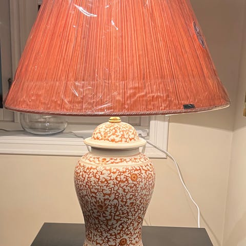 Selger 2 lampeskjermer, trukket i boucle stoff .