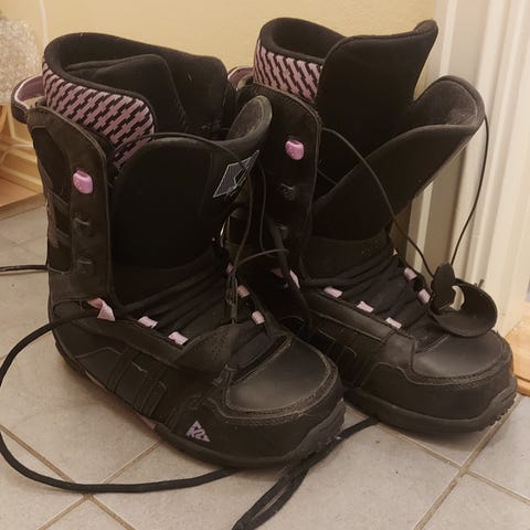 Selger et par Creek snowboardstøvler i størrelse EU 43 (US 9.5 / UK 8.5 / 27.5 cm). Dette er komfortable støvler som passer perfekt for nybegynnere og deg som vil ha et rimelig og godt par til snowboardturer i bakken.