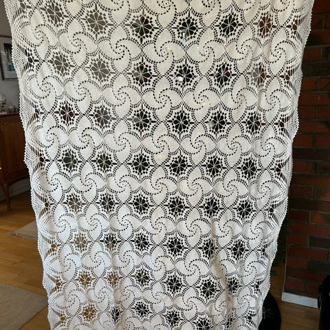 Hjemmeheklet sengeteppe- duk.