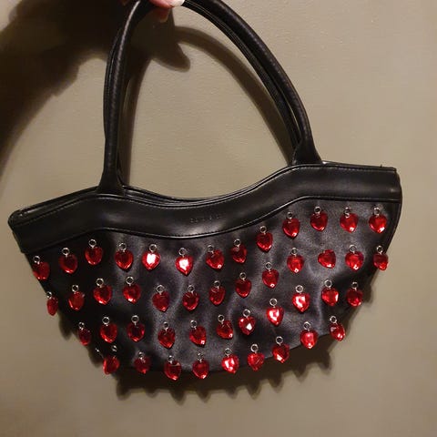 Nydelig rød prikkete veske fra Dianas salonger som man blir glad av å se på😊Den er kun brukt en gang og blir bare hengende. Veska fortjener å bli brukt mer.