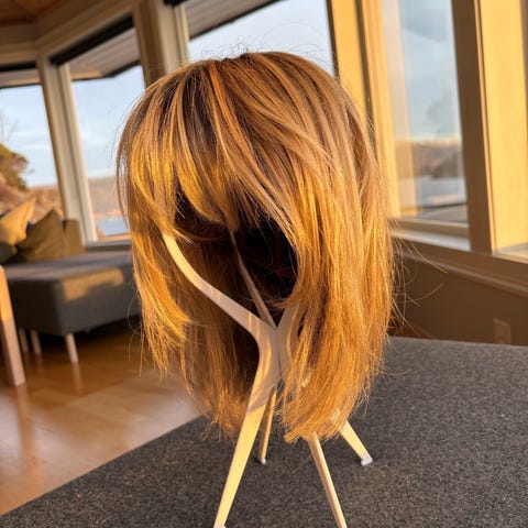 Ikke børst våt parykk, bruk parykkstativ eller annet som slipper til luft under tørking og oppbevaring.