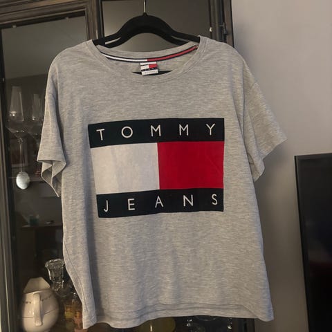 Selger denne kule t-skjorten fra Tommy Hilfiger i fine farger. Den er i en størrelse XXL og er ikke brukt, men har ligget i skapet en stund. Kan brukes av både gutter og jenter. Selges for 150kr, men er åpen for bud!