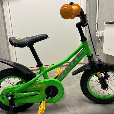 Ramme: 14 tommer, Den oransje fargen er til 3-4 år, Den passer 95- 110 cm høyde