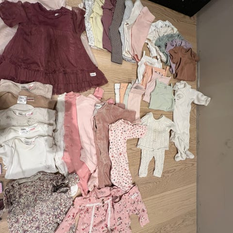 Liten klespakke i str 56 🌸 4 bukser, 1 pysj, 1 strømpebukse, 1 kjole, 1 sparkedress og 3 bodyer ⭐️ Merker som Newbie, NoaNoa, H&M & Name It
