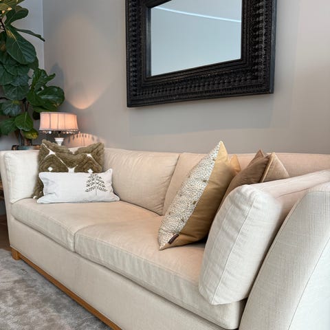 Ben i lakkert eik gir sofaen et lett og elegant løft.