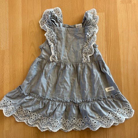 Newbie kjole i lilla farge, laget av bomull. Passer jenter i størrelse 98.