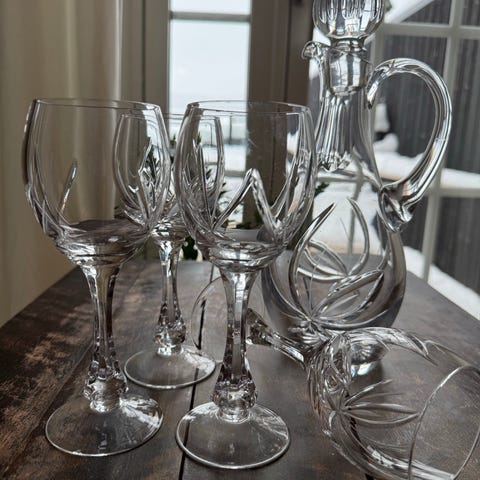 Serviset har vakre gulldetaljer. Det er brukt og har vært i oppvaskmaskin, så gullkantene viser brukstegn, men serviset er fortsatt pent og helt perfekt til daglig bruk.én ekstra skål og én ekstra stor + to små tallerkener følger med gratis om ønskelig