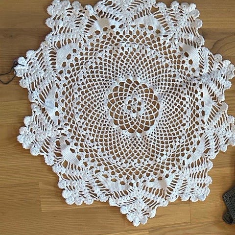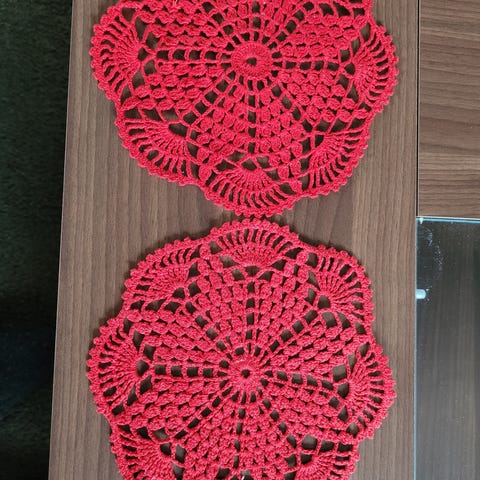 Flotte hvite heklebrikker- fine å bruke på dekketallerken