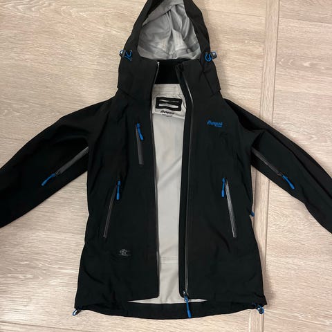 Bergans Annet yttertøy for dame i størrelse S. Jakken er blå og laget av polyester. Den har hette med justeringsmuligheter, flere glidelåslommer, og regulerbar midje og mansjetter. Passer til utendørs bruk.