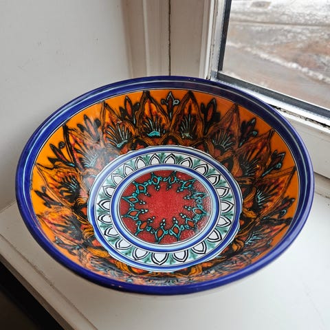 Fatene er 13 cm i diameter.