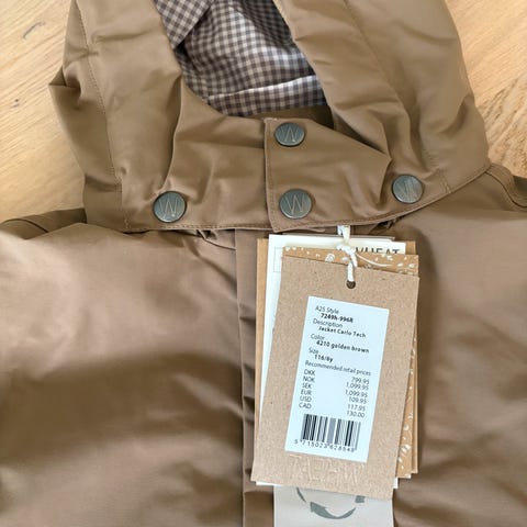 Ny Wheat skalljakke i størrelse 116, fargen blå. Jakken har hette og lommer, med et rutemønstret innerfôr. Ny pris 1200kr. Lappene er på. Perfekt som vår- sommer- og høstjakke.