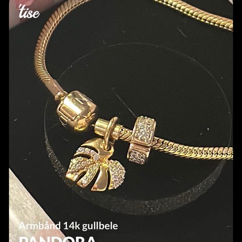 Armbåndet er belagt med 14k gull og kommer med en hjerteformet lås med en inngravert Pandora-logo på den ene siden og den ikoniske Pandora Crown O på den andre siden.