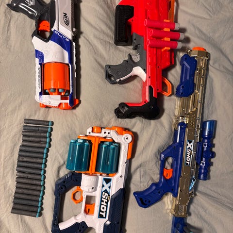 Nerf Mini og små leketøysvåpen i ulike farger og modeller. Passer for barn til lek og moro. Laget i plastmateriale.