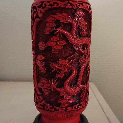 Vintage kinesisk vase – Håndskåret med motiv av traner