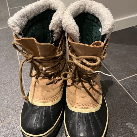 Sorel Caribou sort i størrelse 44 (passer også bra for str 43). Støvlene har en kombinasjon av skinn og gummi i materialet, med fôr for isolasjon og varme. Uttakbar innerstøvel i ull.