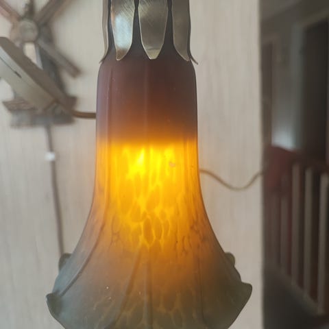 Vintage taklampe / pendellampe med blomsterdekor – retro glasskjerm