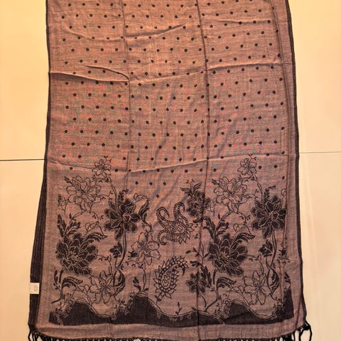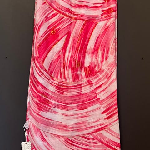 Lekkert viskoseskjerf i rødt og hvitt.