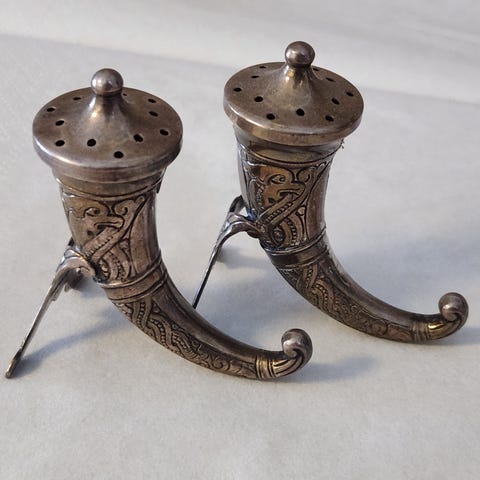 To fine kremmerhus i messing med oppheng.Lengde 19 cm og 15 cm uten oppheng.Oppheng 3cm